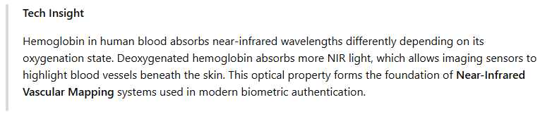 While heart signals verify internal electrical activity, Vascular Biometrics focus on the structure of the circulatory system.